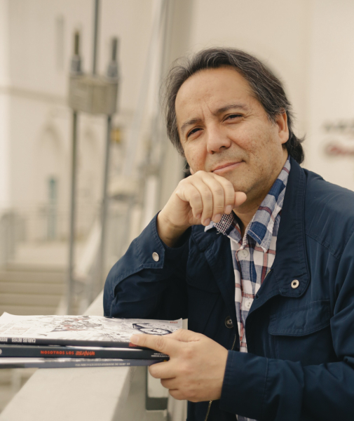 Né en 1971 à Santiago du Chili, Rodrigo est illustrateur, auteur et professeur d’arts plastiques reconnu sur la scène chilienne et internationale. Enseignant au Département des Arts visuels de l’UMCE, il développe parallèlement une importante carrière éditoriale. Il est l’auteur, entre autres, de Dragón Lemur, ¡Flamenco!, El Origen et El Sueño de Quetzalcóatl, et a collaboré à des séries emblématiques comme Heredia Detective et Doctor Mortis. En duo avec Carlos Reyes, il signe plusieurs romans graphiques majeurs, dont Los Años de Allende (Les années d’Allende), Nosotros los Selk’nam (Nous les Selk’Nams) et Víctor Jara, un canto comprometido. Ses œuvres sont publiées dans de nombreux pays et régulièrement exposées en Europe et en Amérique. Très récompensé, il reçoit notamment le prix “Liberi di Scrivere Award” (2017) et plusieurs distinctions du Festival International de Comic de Santiago, ainsi que deux médailles Colibrí Ibby. Parmi ses travaux récents figurent ORION (Antü) et la biographie illustrée de Gabriela Mistral Verso, vida y viento (Hueders).